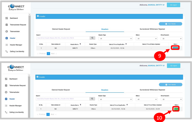 - Header registrar will validate and verify details provided by the telemarketer/Principal